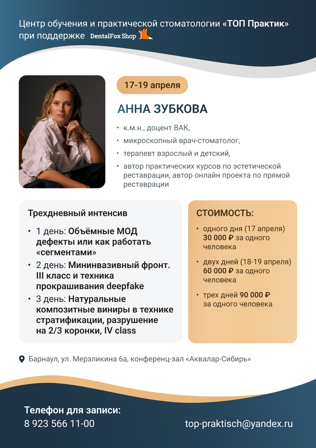 8. Заключительные положения 8.1. Пользователь может получить любые разъяснения по интересующим вопросам, касающимся обработки его персональных данных, обратившись к Оператору с помощью электронной почты SHOP@DENTALFOX.INFO. 8.2. В данном документе будут отражены любые изменения политики обработки персональных данных Оператором. Политика действует бессрочно до замены ее новой версией. 8.3. Актуальная версия Политики в свободном доступе расположена в сети Интернет по адресу dentalfox.info/activity.